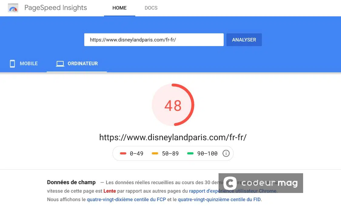 PageSpeed Insights est particulièrement efficace pour améliorer la vitesse de chargement de votre site Web et affiche une performance de vitesse qui vous permet de juger de la qualité de l’affichage.