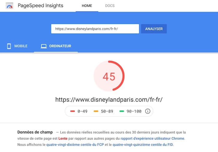 PageSpeed Insights se démarque pour booster la rapidité de chargement de vos pages. Il attribue une note sur 100, accompagnée d’une série de critères clairs : ce sont eux qui ralentissent votre site.